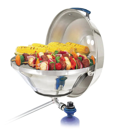 We supply professional grade marine grills designed for durability, including the Magma Marine Kettle Grill and the KETTLE PARTY SIZE GAS GRILL. We also stock related accessories like covers (Magma Marine Kettle "Original" Grill Cover Pacific Blue) and various rail mounts for secure boat installation.