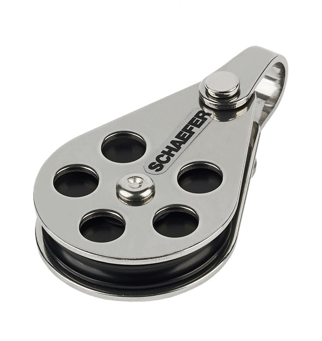 33-03 SS wire block with aluminum sheave. Aluminum sheave runs on our Nomex/Teflon bearing for low friction and high safe working load.