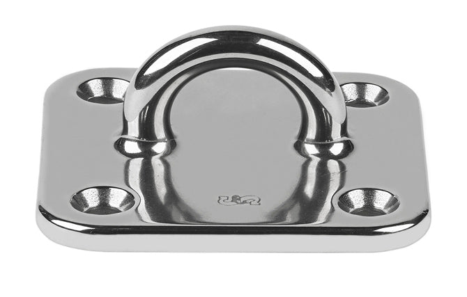 Investment cast square padeye. 316 Stainless Steel. Order Backing Plate 97-52 separately. Eye Width 3/4" (19 mm), Eye Height 3/4" (19 mm), Eye Stock 5/16" (8 mm), Length 3" (76 mm), Width 3" (76 mm), Fasteners (4), 1/4" FH (6 mm), C/C A 2" (51 mm), C/C B 2" (51 mm), SWL 4000 lbs. (1800 kg)