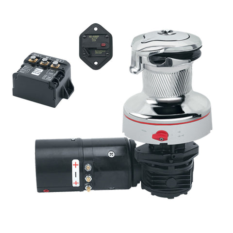 Activated remotely by twin in/out buttons, the Rewind Radial lets you safely ease and trim highly loaded sails in both directions without ever taking the line out of the self-tailer, a patented feature. Like all electric Radials, the Rewind operates like a normal Harken two-speed electric winch. A simple flip of the red knob on the winch base turns on the rewind feature. A spring-loaded arm of investment-cast stainless steel funnels and keeps line captive as it feeds in and out of the self-tailer while you adjust the sail under fingertip control.
