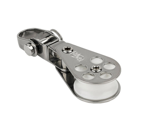 Stainless steel cheeks provide years of reliable service. Featuring Delrin sheaves or Delrin ball bearing sheaves.