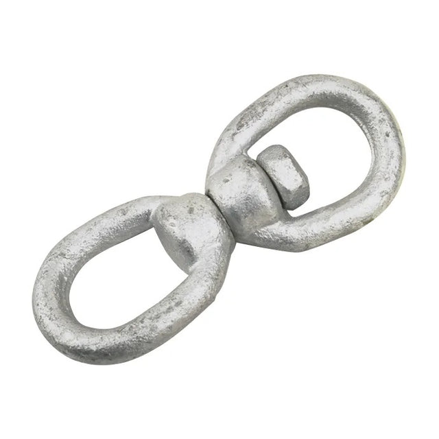 Eye & Eye Swivels link together two parts that have separate rotational directions, reducing knotting or twisting and relieving stress. Large eyes accommodate shackles for chain connections or eye splices with thimbles. Constructed of hot dipped galvanized forged steel.