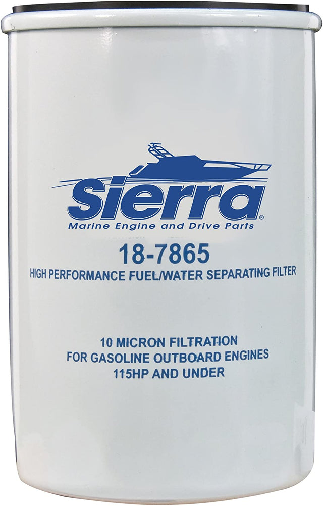 Made of marine grade stainless steel for ultimate corrosion protection and durability. 28 Micron filter element shaped into 66 pleats. All filters flow at 90 GPH to feed even the hungriest motor. Ethanol blended fuel absorbs more water and loosens more particulants than regular fuels. Proper filtration is required for every horsepower engine. Sierra fuel water separators remove over 988% of emulsified water from your gasoline. Sierra's 10 micron filters are over 90% efficient at removing particles as small as 10 micron. Rating: 10 Micron.