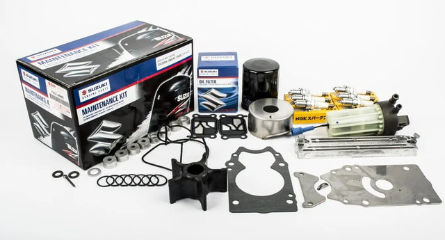 Maintenance Kits include everything necessary for perfoming the recommended service Save time and money using the all inclusive Marine Maintenance Kits MARINE MAINTENANCE KITS INCLUDE Oil Filter Spark Plugs Water Pump Kit Water Pump Case Sleeve Anodes Cotter Pin Gaskets O-Ring