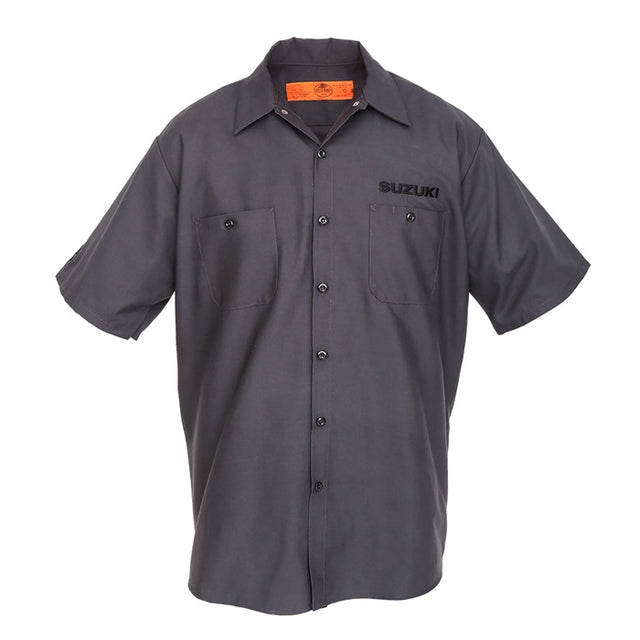 65% polyester, 35% cotton. Features the Suzuki logo embroidered on the left chest and Suzuki "S" on the right sleeve.
