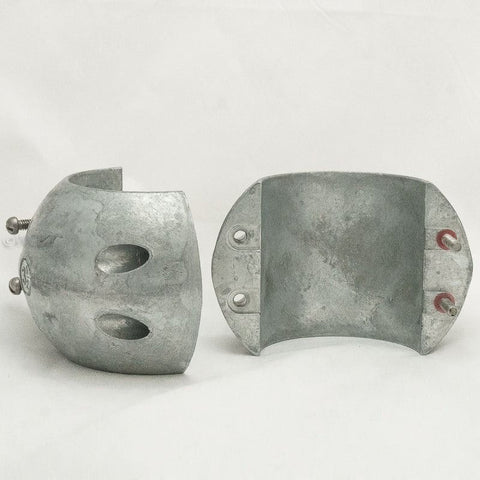 All aluminum shaft anodes have interlocking halves and extra alloy around the fastener.