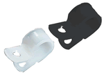 These clamps have rounded edges that won't cut into wire. They also have a locking mechanism that prevents them from twisting when tightened by a mounting screw. Black clamps have a UV inhibitor added.