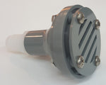 Combination strainer/check valve has slots on the inlet to filter out unwanted debris. Ideal for use on hose in a pond or lake.