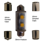 - 44 mm dimpled festoon bulbs (single color aqua signal series 25 nav lights)