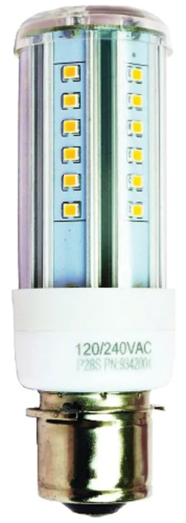Finally, a true one-to-one, rough service LED replacement for 120/240V AC 60W, Medium Prefocus P28S base incandescent bulbs for 6 nautical mile navigation lights.