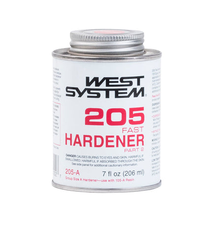 205 Hardener is a medium-viscosity epoxy curing agent. It is used in a majority of situations, at lower temperatures and to produce a rapid cure that develops its physical properties quickly at room temperature. When mixed with the 105 Resin in a five-part resin to one-part hardener ratio, the cured resin/hardener mixture yields a rigid, high-strength, moisture-resistant solid with excellent bonding and coating properties. Not intended for clear coating.