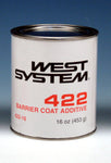 A proprietary blend designed to improve cured epoxy's moisture-exclusion effectiveness. 422 is used as a barrier coating additive to help prevent gelcoat blistering. 422 also increases the epoxy's abrasion resistance. Cures to a light gray color. Add to mixed resin/hardener at the rate of 15 to 20% by weight3 tablespoons per 8 fl. oz. epoxy (approximately 32 oz. per B group).