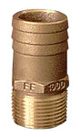 Used for connecting hose to valve, seacocks, strainers or any hardware having female NPT pipe threads. FF fittings are designed to accommodate the designed full pipe size flow and to provide an unrestricted passage through the fitting. Fittings are cast bronze. A hex nut is cast-in to allow for secure tightening.