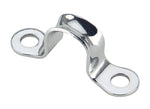 Eyestraps are useful accessories. They form light-duty mounting bases for blocks, serve as lash-down points, and can be used for fairleads. Forged eyestraps are extremely strong and their smooth shape wonít chafe line.