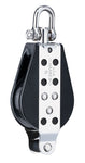 Mid-range blocks can be used for mainsheets, halyards, spinnaker sheets and control lines on medium and large offshore boats. The 3" diameter ball bearing sheave accepts 9/16" line and has a working load of 1800 lbs.