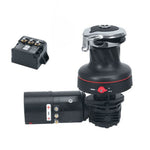 Activated remotely by twin in/out buttons, the Rewind Radial lets you safely ease and trim highly loaded sails in both directions without ever taking the line out of the self-tailer, a patented feature. Like all electric Radials, the Rewind operates like a normal Harken two-speed electric winch. A simple flip of the red knob on the winch base turns on the rewind feature. A spring-loaded arm of investment-cast stainless steel funnels and keeps line captive as it feeds in and out of the self-tailer while you adjust the sail under fingertip control.
