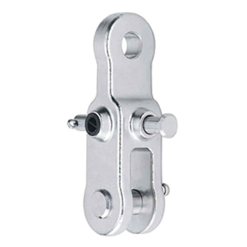Harken toggle assembly accepts standard turnbuckle using swage, rod, Norseman, or Sta-Lok terminals. Toggle flips for fork or tang chainplate installation. A single stainless steel clevis pin provides access to the turnbuckle for adjustment. Sta-Lok® is a registered trademark of Sta-Lok Terminals, Ltd.