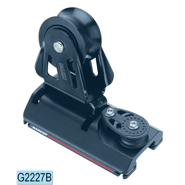 Pinstop and ball bearing genoa lead cars both run on ball bearing track, allowing you to upgrade your system without changing track. Sheave carriers pivot to adapt to changing lead angles. High-load axle bearing sheaves pivot 60 degrees for easy trimming. Cars can be easily removed from the track to clean up the deck. Use in applications where lead positions are changed frequently. CB and ESP adjustable cars need track mounted end controls 2740 or 2742 for either 2:1 or 4:1 purchase. Pinstop cars use 2751 track only.