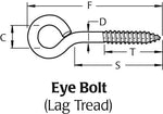 Hindley Stainless Steel Lag Thread Eye Bolt - 5/16" Diameter x 2-3/4" Shank