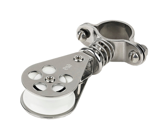 300-35 Pulpit Furling Lead. Stainless Steel spring keeps block supported. Delrin ball bearing sheave ensures low-friction lead for your furling line.