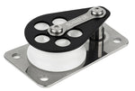 3 Series Cheek Block with anodized Aluminum cheek. Delrin plain bearing sheave ensures smooth operation and high safe working load. Stainless Steel base distributes loads to a larger surface area.