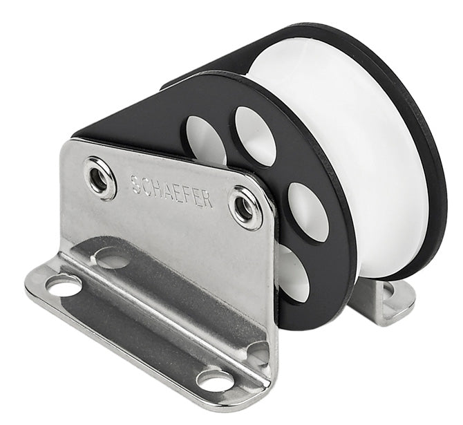 303-50 Halyard/Control block. Delrin sheave ensures smooth operation and high strength. Stainless base and Anodized aluminum cheeks provide a solid platform.