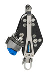Fiddle block with anodized aluminum cheeks, cam cleat and becket. Works with 504-45 for a 4:1 purchase. Fast entry cam cleat ensures smooth line engagement. Removable becket allows pre-spliced lines to be easily attached. Delrin(tm) sheaves ensure smooth operation and high safe working load.Sheave Dia. 2" (51mm), Thickness 2 5/16" (58mm), Width 3 7/32" (82mm), Length 6 13/32" (163mm), SWL 1750 lbs. (795kg), Weight 11.6oz (329g), Max Line 7/16" (11mm)