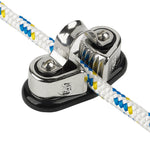 Sure Grip cam cleat features investment cast stainless steel cams that won't wear out or corrode. Eye strap keeps line captive. Max Line Size 5/8" (16 mm), Fastener Size (2), # RH (5 mm), C/C 1-25/32" (45 mm), L 3-3/16" (81 mm), W 1-11/16" (43 mm), H 1-1/8" (28 mm), SWL 500 lbs. (225 kg), Weight 7 oz. (178 g)