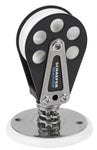 Sheave Dia. 2-2/8" (60 mm), Max Line 1/2" (13 mm), Dia. includes urethane base 3-3/8" (86 mm), Height 4-25/32" (120 mm), H2 2-15/32" (63 mm), Fastener Size (4),1/4" RH (6 mm), C/C 1-11/16" (43 mm), SWL 2250 lbs (1020 kg), Weight Aluminum 11.7 oz. (332 g)