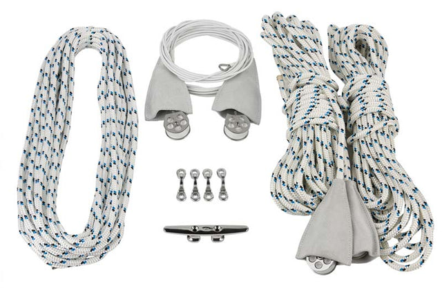 Our 99-64 Lazy Jack kit is great for most boats up to 48'. Featuring a "third" control line for longer length booms. Contains vinyl covered wire, ball bearing blocks covered in leather and a simple yet elegant design that is easy to install. Boat Size 37'-48' (11.3 m-14.6 m), Mainsail Luft 39'-50 (11.8m-15 m), Boom Foot 12'-16' (3.7 m-4.9 m), Included Wire (vinyl coated) 16' (4.9 m), Included Line (yacht braid) 92' x 5/15" (28 m x 8 mm), Weight 9 lbs. (4.08 kg)