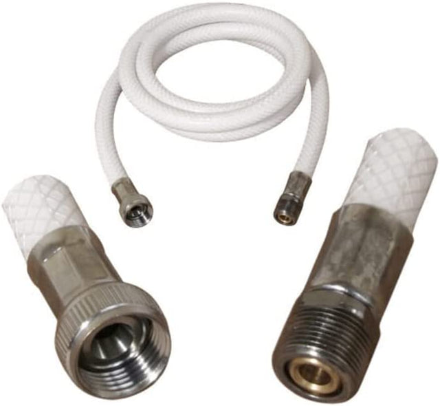Combination faucet and shower with 5' pull-out hose. Press the button on back of handle to switch between aerated water flow or shower spray.