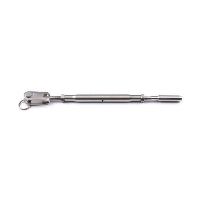 These streamline closed body turnbuckles are great for smaller boats in freshwater. The compact design uses hex nuts to lock the turnbuckle in place and eliminates the need for cotter pins that can catch on lines and rip sails. The 316 stainless steel body and toggle terminals provide a great blend of strength and corrosion resistance. The swage terminal is also constructed using 316 stainless steel and is sized to the wire. Professional roller swaging is recommended for installation of swage terminals. Clevis pin is secured using a cotter ring. For a rigging solution that won’t catch on lines or rip sails, switch to tubular-body stainless steel turnbuckles.