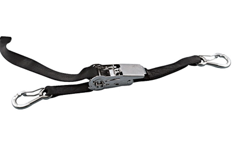 The Ratchet Assembly with Clips is available in multiple lengths and webbing widths from 1″ to 2″ to fit every project, big or small. It features a stainless steel ratchet buckle, two stainless steel harness clips and high-quality nylon webbing. This ratchet assembly is ideal for marine and industrial tie-down applications.