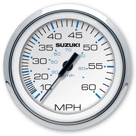 4" Diameter - White. Easy to read white face. 0 - 65 mph. Requires tubing kit.