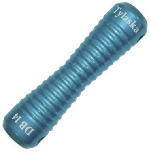The main feature of the Tylaska dogbone design is its unique patented tapered design with a grooved texture that grabs onto the line and prevents slippage. As the dogbone relies on friction to keep the connecting line from slipping off its ends, designs with straight shanks are not very secure and adding flanges to the shank creates snagging problems. Tapering the shank is better, but still does not grip the line. The new Tylaska design has both a taper and multiple surface humps that grip the line but do not cut or damage the fibers. This feature works extremely well and makes a big difference over competing designs.