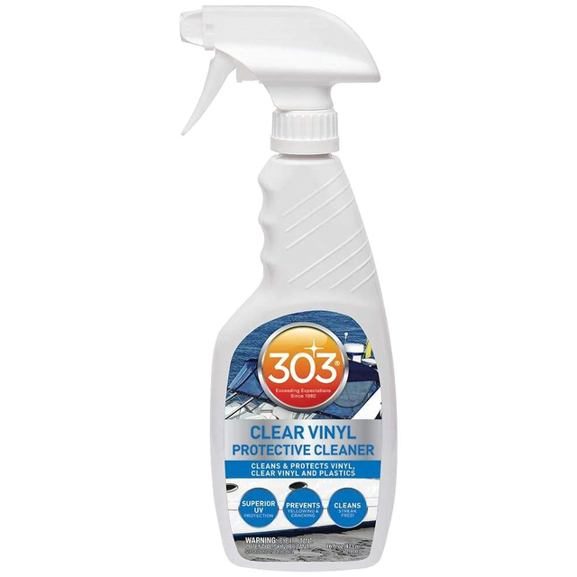 303 Clear Vinyl Protective Cleaner offers superior protection against the harmful effects of UV rays. This product is all you need to safely clean and protect against yellowing and cracking of vinyl, clear vinyl, Strataglass and Eisenglass boat windows, leaving a non-streaking finish.